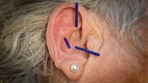 Ear Acupuncture is a complete system unto itself, a coordinated map of the body. I use small sterile needles placed in the ear at strategic points to stimulate pain relief response and calm the nervous system. I use it as an adjunct to body acupuncture.